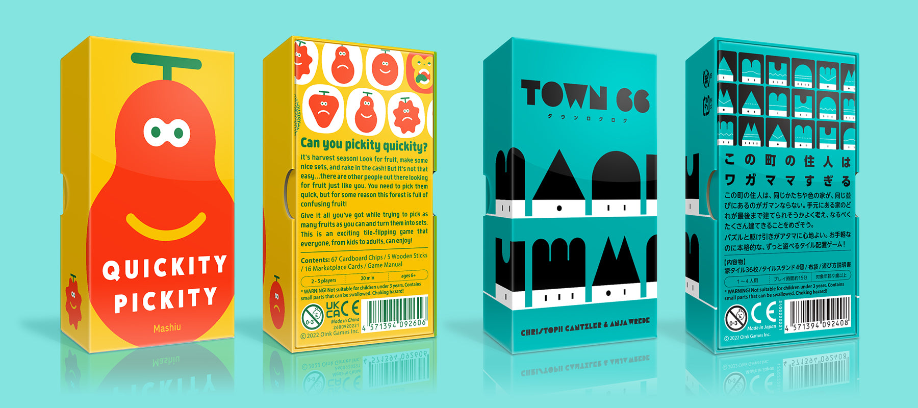 Founded in 2010, Oink Games is a Japanese board game publisher whose philosophy is to create simple yet sophisticated games that are easy to learn and fun to play. Oink Games' games are reknowned for their minimalist design, high-quality components and innovative gameplay mechanics. They are generally lightweight and easily transportable making them great after dinner, travel and family friendly games.