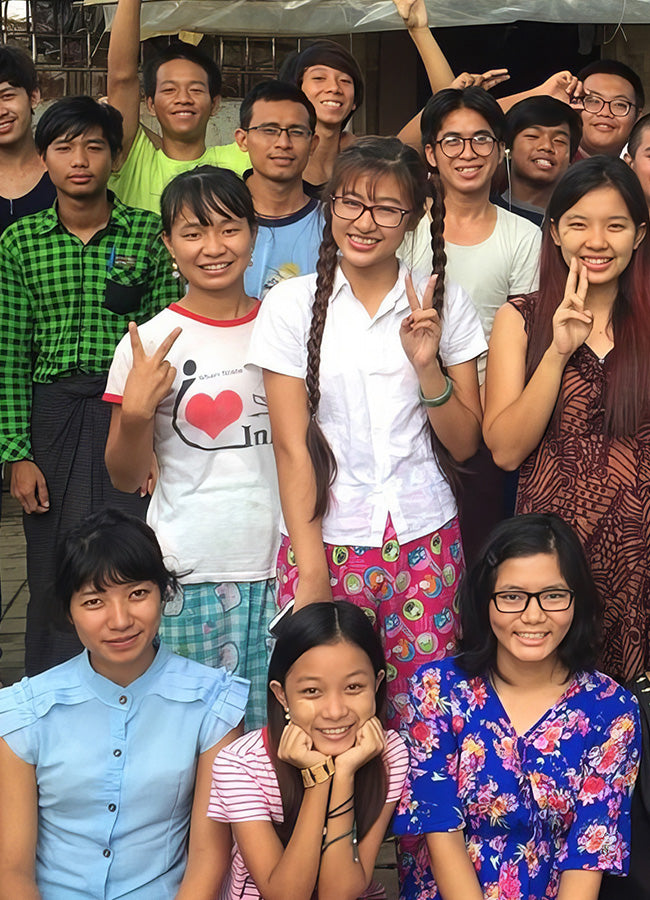 The ten percent of Gabar's profits that go towards the rebuilding of Myanmar includes a donation to Prospect Burma, a UK- and Myanmar-based organization that supports Myanmar's young people to gain higher education and skills. Their efforts promote a younger generation of collaboration to repair the country's damaged infrastructure and peacefully rebuild a civil society.