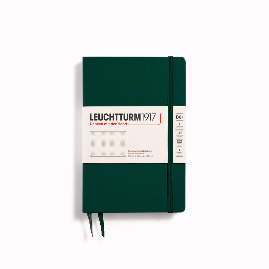 The sleek and elegant B6+ notebook with dotted pages is the same size as a paperback book. It is a really handy size and is ideal for notes, thoughts and plans during a meeting or when travelling.
