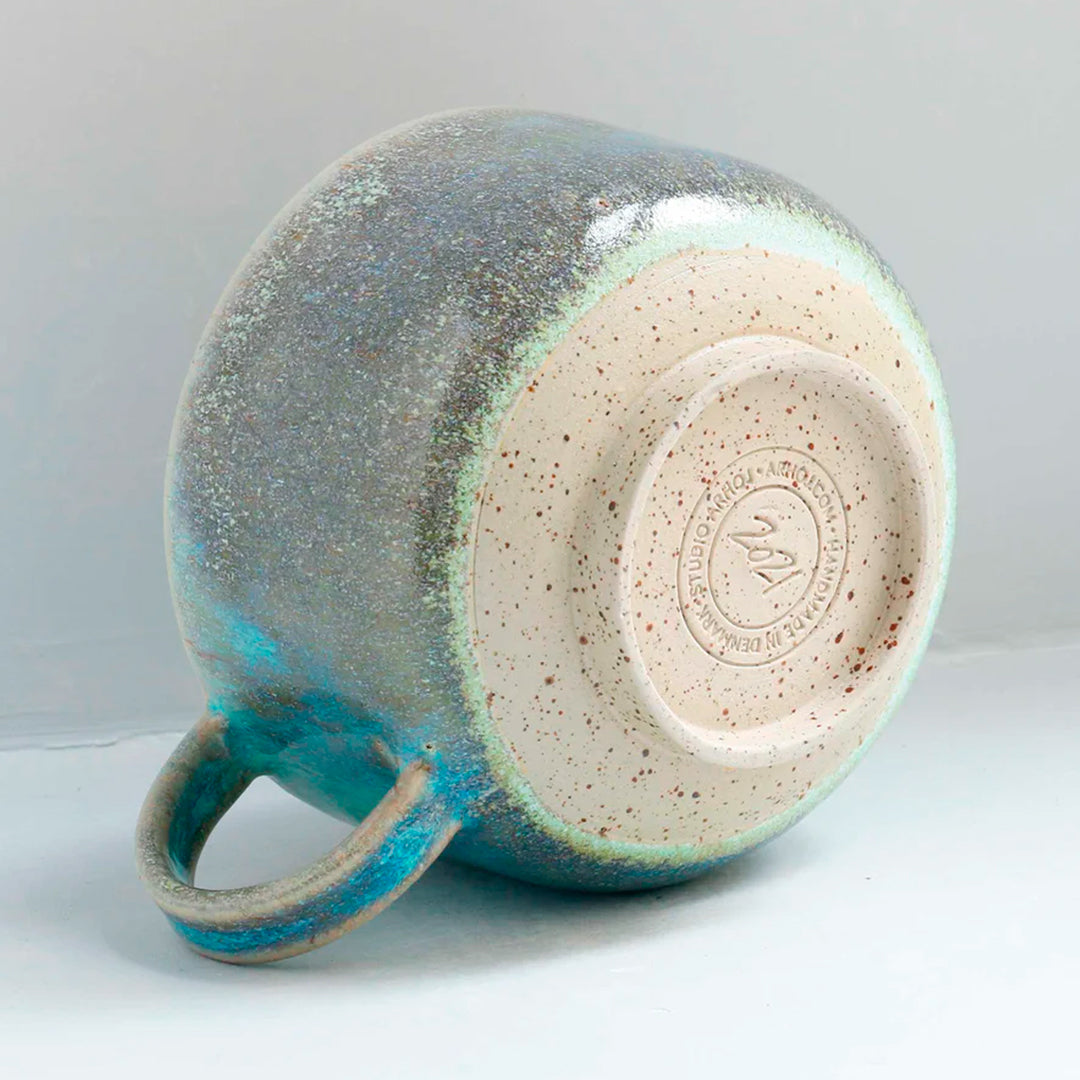 Each mug is individually glazed in Denmark by a member of the Studio Arhoj team, ensuring that no two items are exactly alike. They measure approximately 14 x 8cm, hold about 450ml and can be safely used in both dishwasher and microwave. We recommend hand washing for the utmost care of this exclusively glazed mug.