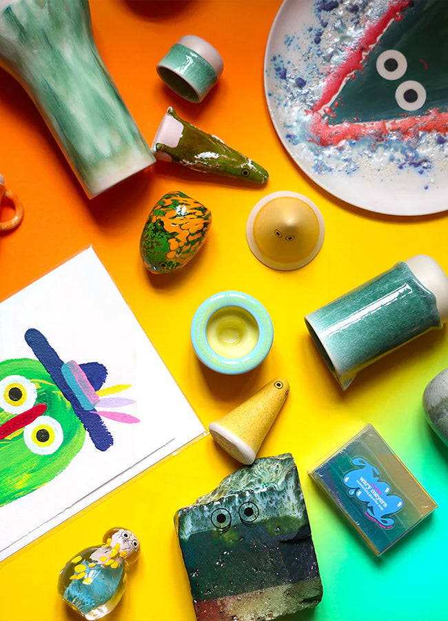 Located in Copenhagen, Denmark, Studio Arhoj is a small independent design and production studio run by founder Anders Arhoj. They produce beautiful and charming Japanese inspired ceramics and hand-blown glass and are famed for their thick colourful glazes and playful characters.