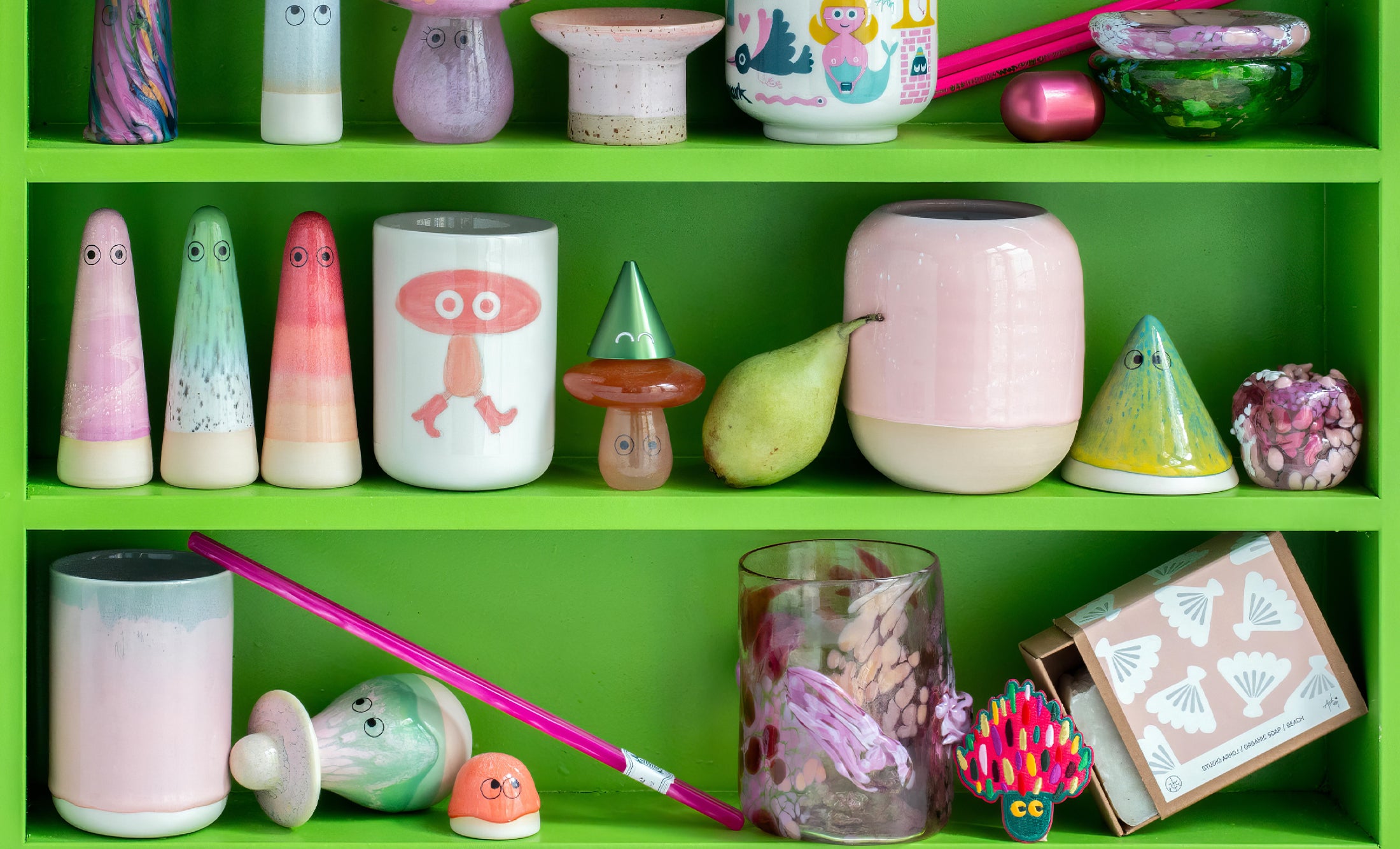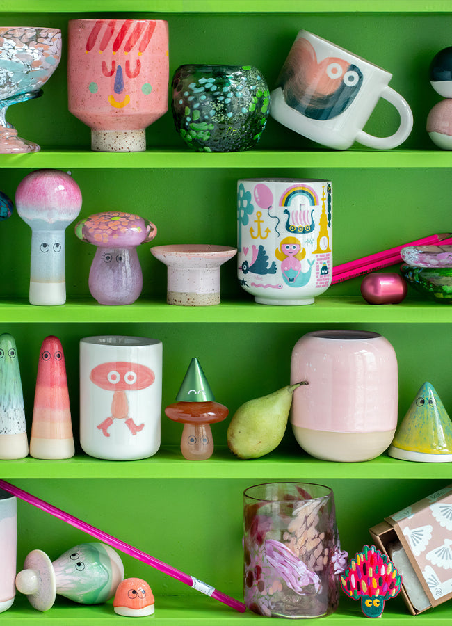 Explore Studio Arhoj’s Home & Accessories collection - playful, handmade objects designed to delight. From the glowing Ghost Light tea-light holder to brass incense holders, ceramic flower chambers, pins and cards, each piece is conceived in Copenhagen with Studio Arhoj’s signature mix of colour, texture and character.