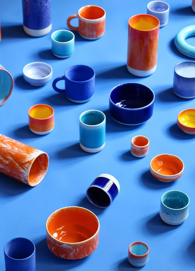 From coffee rituals to shared meals, Studio Arhoj tableware combines function and artistry. Discover handmade Chug Mugs, Mion Mugs, Spring Bowls, and Sip Cups, each thrown and glazed by hand in Copenhagen. Every piece is unique, bringing warmth, colour, and craft to daily life.