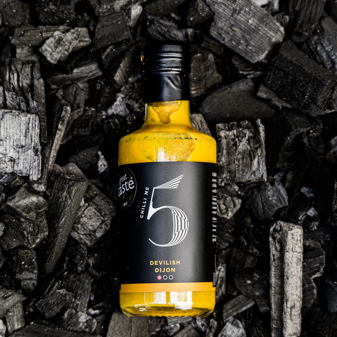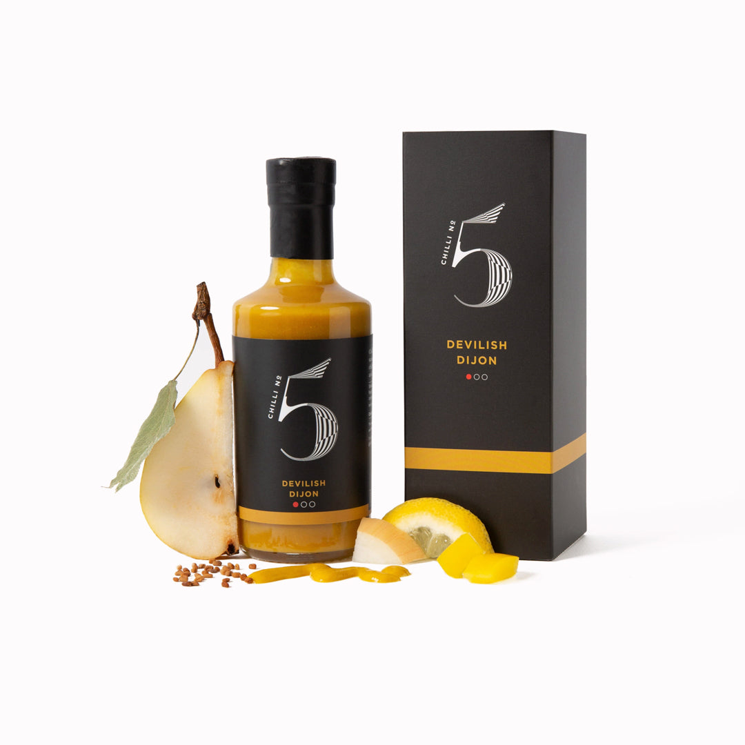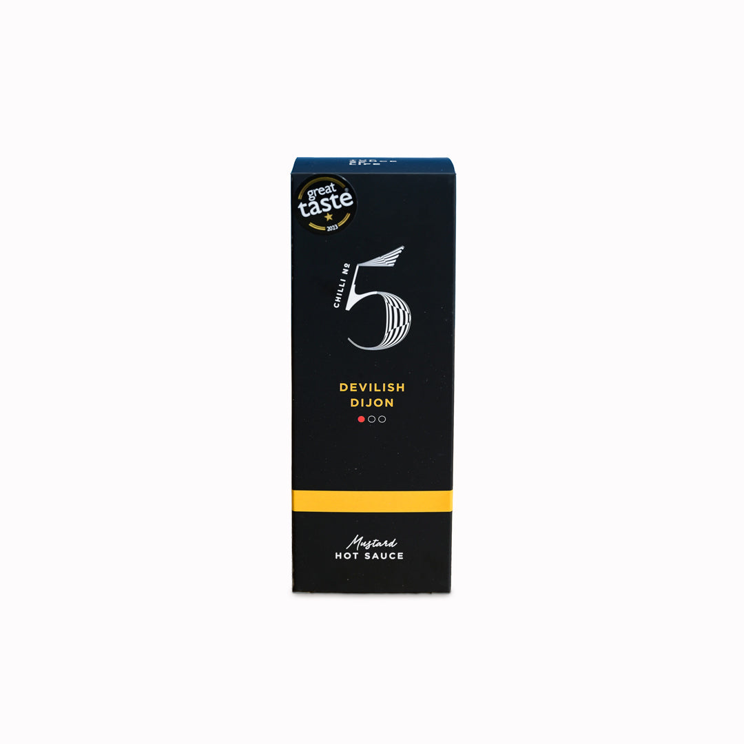 The Latest Edition to Chilli No5's stable is a unique blend of the finest quality Dijon mustard and fiery chilli peppers and is sure to awaken your taste buds and leave you craving more.. the sauce is 100% vegan and made with natural ingredients, free from artificial preservatives and colours.