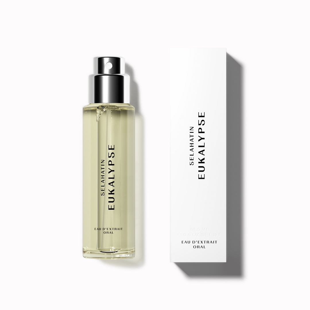 Eukalypse by Selahatin is a luxury mouth spray (Eau d'Extrait Oral) with flavour notes of Eucalyptus, Honey, Cardamom & Pine. It pays homage to the Eucalyptus tree, rooted in exotic and aromatic landscapes. Travel friendly sized glass bottle holds 18.5ml - use to freshen your breath when you're out and about for an instant boost to your oral hygiene.